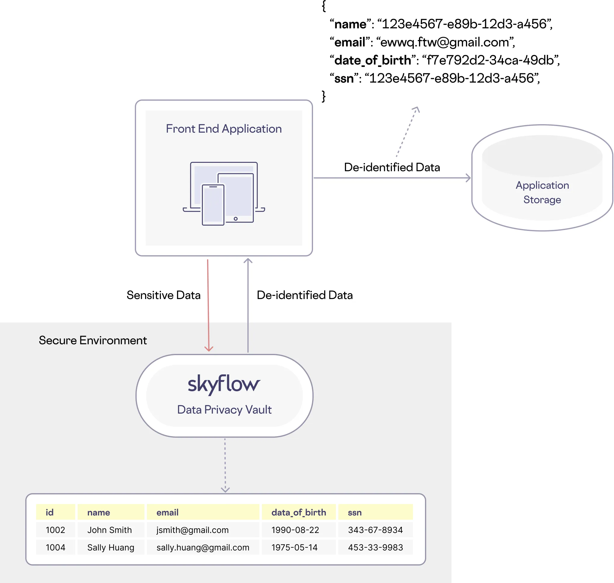 A Skyflow vault can be plugged in anywhere in your stack, from your front end is just one example.