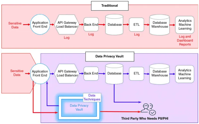 Traditional PII management versus a data privacy vault (source: IEEE).
