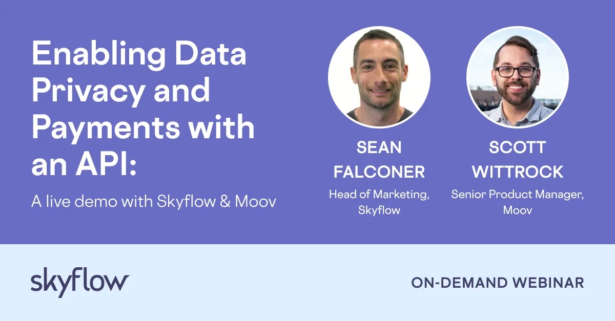 Businesses need to store sensitive data like names, emails, credit cards, and banking information to support features like account creation and payments. But storing sensitive data is a compliance and security burden. And traditional approaches to maintaining data privacy for payments are complicated, full of silos and abstractions. In this technical session, we will demonstrate a live interaction demo using Skyflow and Moov and discuss how businesses can: